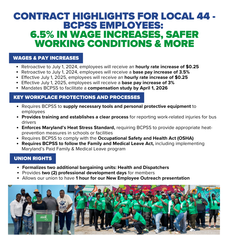 We're excited to share that management has signed our union contract. This week, the AFSCME Local 44 Board of Education Bargaining Team will also be signing the contract. Look out for our finalized contract!